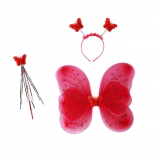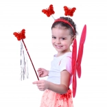 Ljubka rdeča metuljeva krila na elastiko so idealna za deklice, stare 3-10 let, dopolnjena s trakom za lase z metulji in palico.