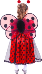 Komplet vključuje vse potrebno - obleko, krila in trak za lase, za popolno preobrazbo v pikapolonico.