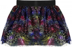 Preobrazbo ustvarite v trenutku – črno spodnje krilo z lahkotnim tilom, potiskanim z barvitimi pajčevinami, vsakemu outfitu doda čarobno noto. Material je zračen, prijeten za nošenje in se lepo ziblje med gibanjem.