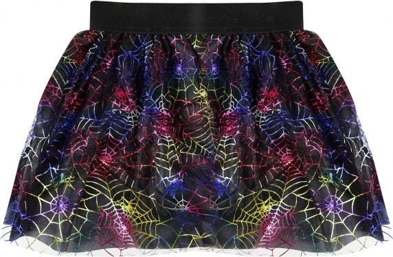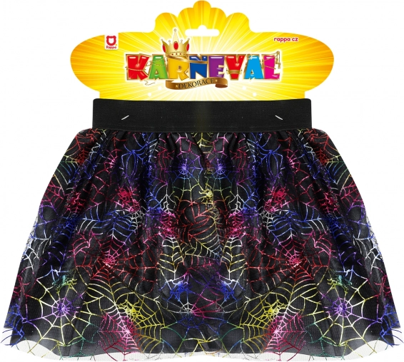 Lahkotno tutu krilo z pisanim potiskom pajčevin bo razveselilo vsako malo čarovnico. Zahvaljujoč elastičnemu pasu se udobno obleče, ima dolžino 28 cm in je idealno za Noč čarovnic, pust in tematska praznovanja. Primerno za deklice, stare 3–7 let.