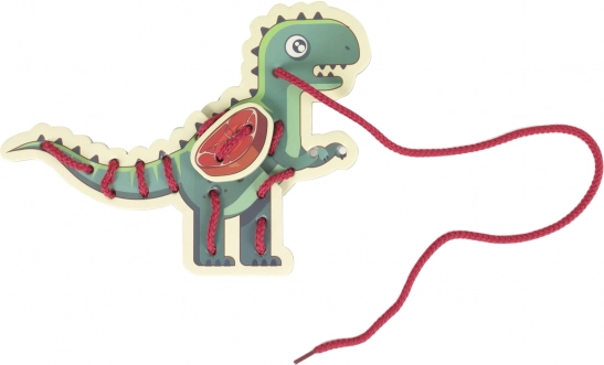 Vzorce odprtin na lesenih dinozavrih otroci prepletajo z natančnimi gibi prstov, kar krepi osredotočenost in koordinacijo oko–roka pri vsakem prepletu.