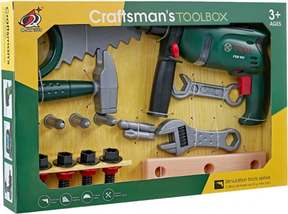 Celovit otroški komplet za male mojstre prinaša realistično igro z orodji, kot so akumulatorski vrtalnik, kladivce, ročna žaga, ključi in drugi dodatki. Vrtalnik deluje na baterije 2× AA 1,5 V (niso priložene) in pomaga razvijati fino motoriko, ustvarjalnost in domišljijsko igro.