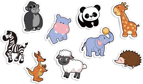 - Celovita vsebina: podlaga, 9 penastih izrezkov živali, 9 nalepk in ustrezno število magnetov.