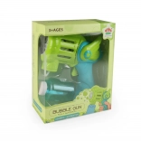 Ta otroška pištola za mehurčke spremeni vsak trenutek v barvito predstavo. Preprosto privijte rezervoar, dolijte raztopino za mehurčke in s pritiskom na sprožilec se usujejo stotine bleščečih mehurčkov. Zaradi lahke konstrukcije in udobnega ročaja je idealna za majhne roke in varno igro.