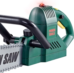 Ta otroška motorna žaga ponuja realističen igralni doživetje ter spodbuja domišljijo in spretnost. Ob pritisku na gumb se aktivira zvočni efekt, prižge se lučka in veriga se vrti, kar zvesto posnema pravo motorno žago.