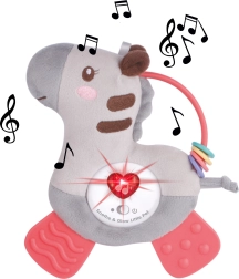 Naš plišasti prijatelj prinaša veselje in spodbuja domišljijo vaših otrok. Zebra je zasnovana z barvnimi svetlobami in zvočnimi učinki, ki se aktivirajo ob pritisku. To ne le zabava vašega otroka, ampak tudi podpira njegov čutni razvoj.
