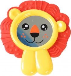 Barvita levja ropotuljica ponuja gladko in varno površino za žvečenje vašega dojenčka. Teksturirana griva prinaša dodatne čutne dražljaje.