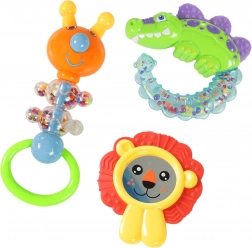 Obogatite otroško sobo s tremi lepo obarvanimi ropotuljicami v obliki živalic, kot so žuželke prijatelji, krokodil in lev. Vsaka ropotuljica je narejena iz kvalitetne in varne plastike, kar zagotavlja ne samo trajnost, ampak tudi enostavno vzdrževanje. Zaradi lahke uporabe jih bo imel vsak otrok rad.