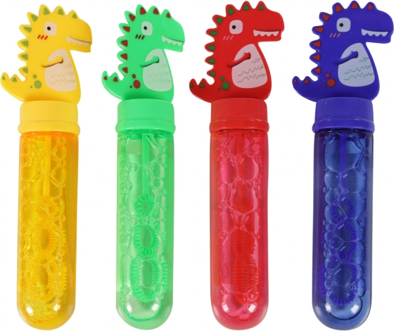 Uživajte v obilici zabave z barvnimi milnimi mehurčki z motivom dinozavra s prostornino 35 ml, ki vsebuje pihalnik v pokrovu.