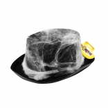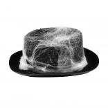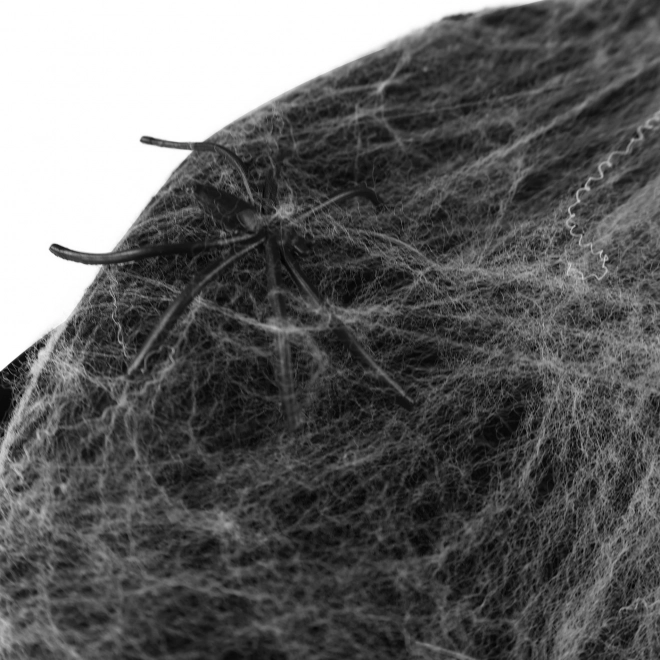Bela umetna pajčevina na črnem klobuku ustvari izrazit kontrast in deluje realistično – idealno za Halloween in grozljive motive.