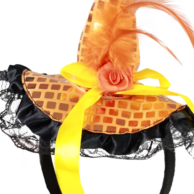 Stajliš naglavni trak z mini klobučkom v oranžni barvi in s črno čipko je odlična izbira za zabave, karneval ter praznovanja čarovnic ali noči čarovnic (Halloween). Ta izrazit dodatek bo tvojemu kostumu dodal šarm in poudaril tvojo osebnost. Lahek, udoben za nošenje in takoj opazen.