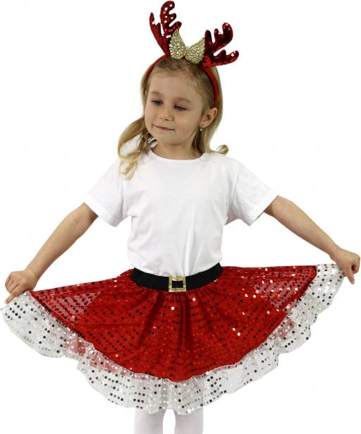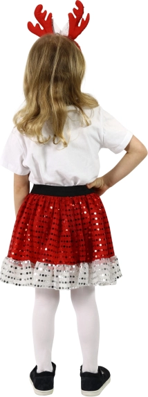 Spremenite Božič v nepozaben dogodek z našim dekliškim božičnim kostumom TUTU, ki je idealen za male princeske. Krilo v rdeči barvi z belim volanom doda celotni slovesnosti poseben pridih. Z zahvaljujoč elastičnemu črnemu pasu se prilagodi vsaki postavi. Del kostuma je tudi čudovit obroč z jelenjimi rogovi, ki odlično dopolnjuje celoten videz.