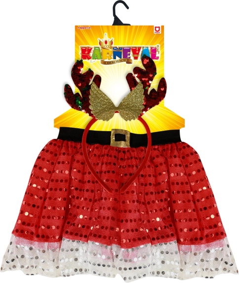 Krilo dolžine 30 cm v rdeči barvi z belim volanom je zasnovano tako, da pritegne pozornost na vsaki božični zabavi.