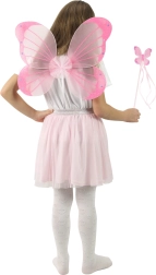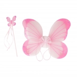 Rožnata krila in paličica z metuljevim dekorjem so idealni za pust, preobleke in igre vil.