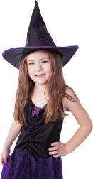 Otroški čarovniški kostum v elegantni črno‑vijolični kombinaciji je odlična izbira za male ljubiteljice čarovnij in domišljije. Lahkotno oblekico krasi vzorec pajčevine, skupaj s klobukom pa tvori lepo ujemajoč se outfit, ki izstopa na vsaki zabavi.