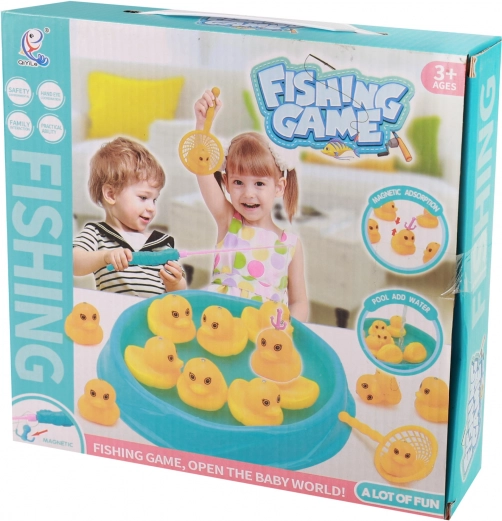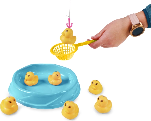 Ta ribolovna igra je odlična izbira za otroke, ki imajo radi vodno zabavo in tekmovanje. Set vsebuje vse, kar potrebujete: trdno palico z magnetno kljukico, praktičen plastični ribnik in šest rumenih račk z magneti. Otroci lahko vadijo natančnost, potrpežljivost in koordinacijo, medtem ko uživajo v varni in ustvarjalni igri.