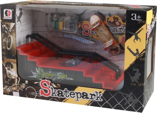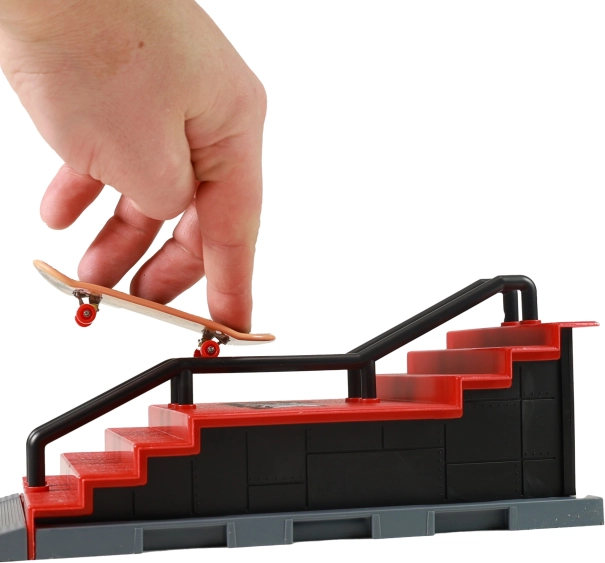 Ustvarite si lastno fingerboard avanturo s tem mini skejtparkom, ki je idealen za trening trikov. Set vključuje klančino s stopniščem in stabilno ograjo, kar vam omogoča izvajanje različnih trikov, kot v pravem skejtparku.