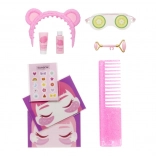 Izbor dodatkov vključno z očesnimi maskami s kumaricami, nalepkami in masažnimi valjčki - vse za čudovito spa tematiko.