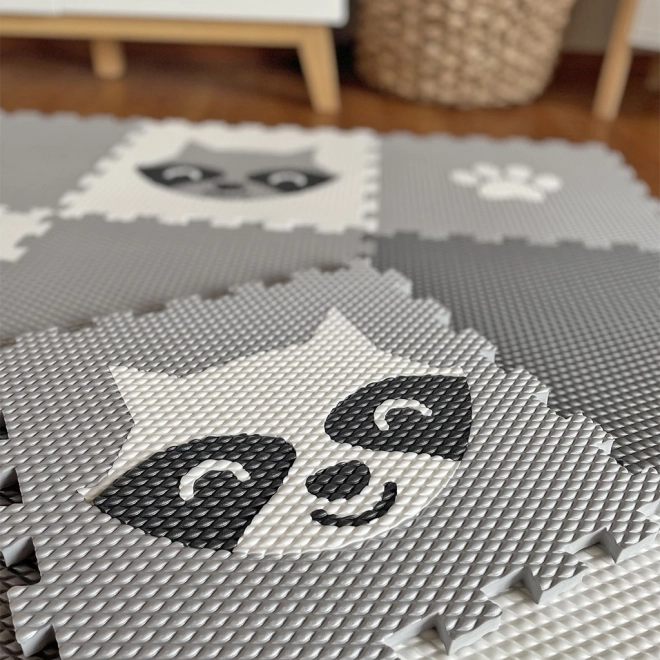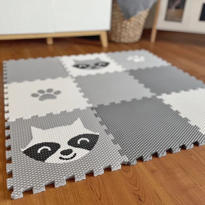 Ta igralna podlaga z motivom rakuna in odtisi tačk preoblikuje vsak otroški prostor v varno in mehko mesto za igro. Enostavna in lahka montaža zahvaljujoč povezovalnim robovom in trpežnemu materialu.