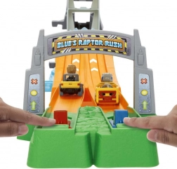 Hot Wheels Jurski svet dirkalna steza vas popelje v okolje, polno hitrosti in vznemirjenja. Set vključuje: