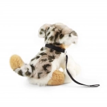 Ta plišasti avstralski ovčar izstopa z zelo vernim videzom, mehko dlako in udobnim oprijemom zahvaljujoč priloženemu povodcu. Ročna izdelava dodatno poudari kakovost in vzdržljivost igrače, ki bo razveselila male in velike ljubitelje živali.