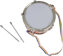 Otroški bobenček s paličkama je odličen dodatek za vsakega mladega glasbenika. Z barvnim trakom za ramena in dvema paličkama postane idealen glasbeni instrument na poti. Z bobenčkom lahko otroci postanejo del godbe ali se zabavajo doma.