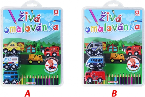 Odkrijte edinstven set avtomobilčkov s pobarvankami, ki jih lahko pobarvate po svoji domišljiji. Set vsebuje 3 mini avtomobilčke s povratnim mehanizmom in pobarvanke z motivi avtomobilov.