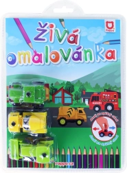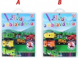 Ustvari svoj gradbiščni svet! Najprej pobarvaj podrobno oblikovane pobarvanke z motivi gradbenih strojev, nato oživi prizor s pomočjo mini avtomobilčkov na vzmetni pogon. Set spodbuja ustvarjalnost in fino motoriko ter zabava otroke dolge ure.