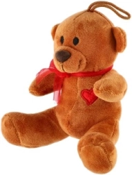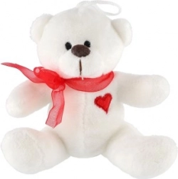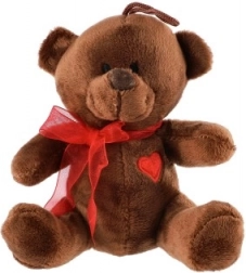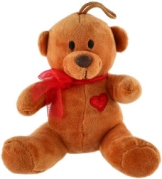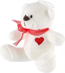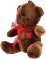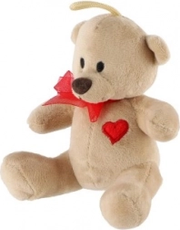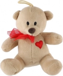 Plišasti medvedek s pentljo in srčkom je primeren kot darilo ali kot dekoracija za otroško sobo.