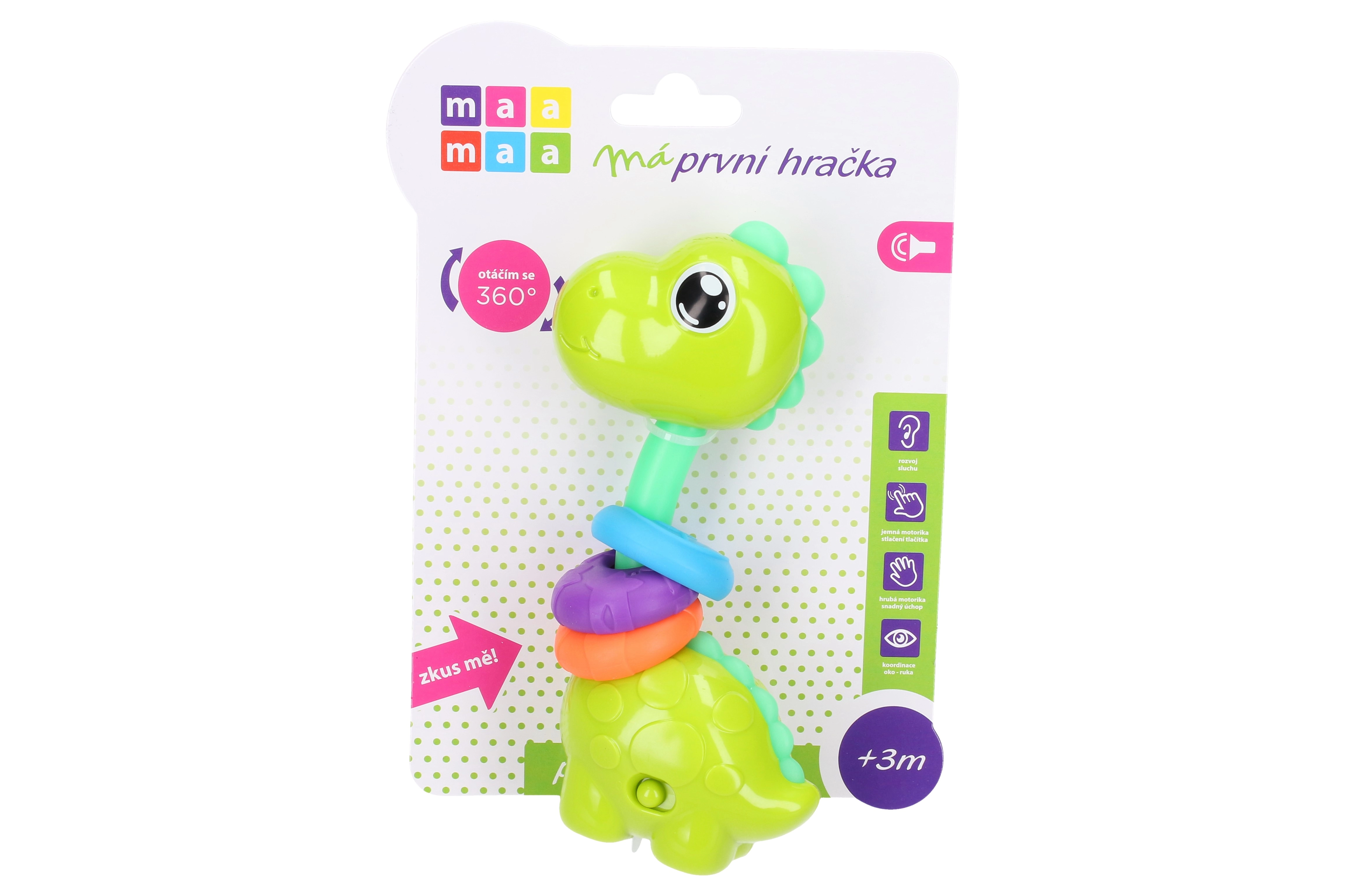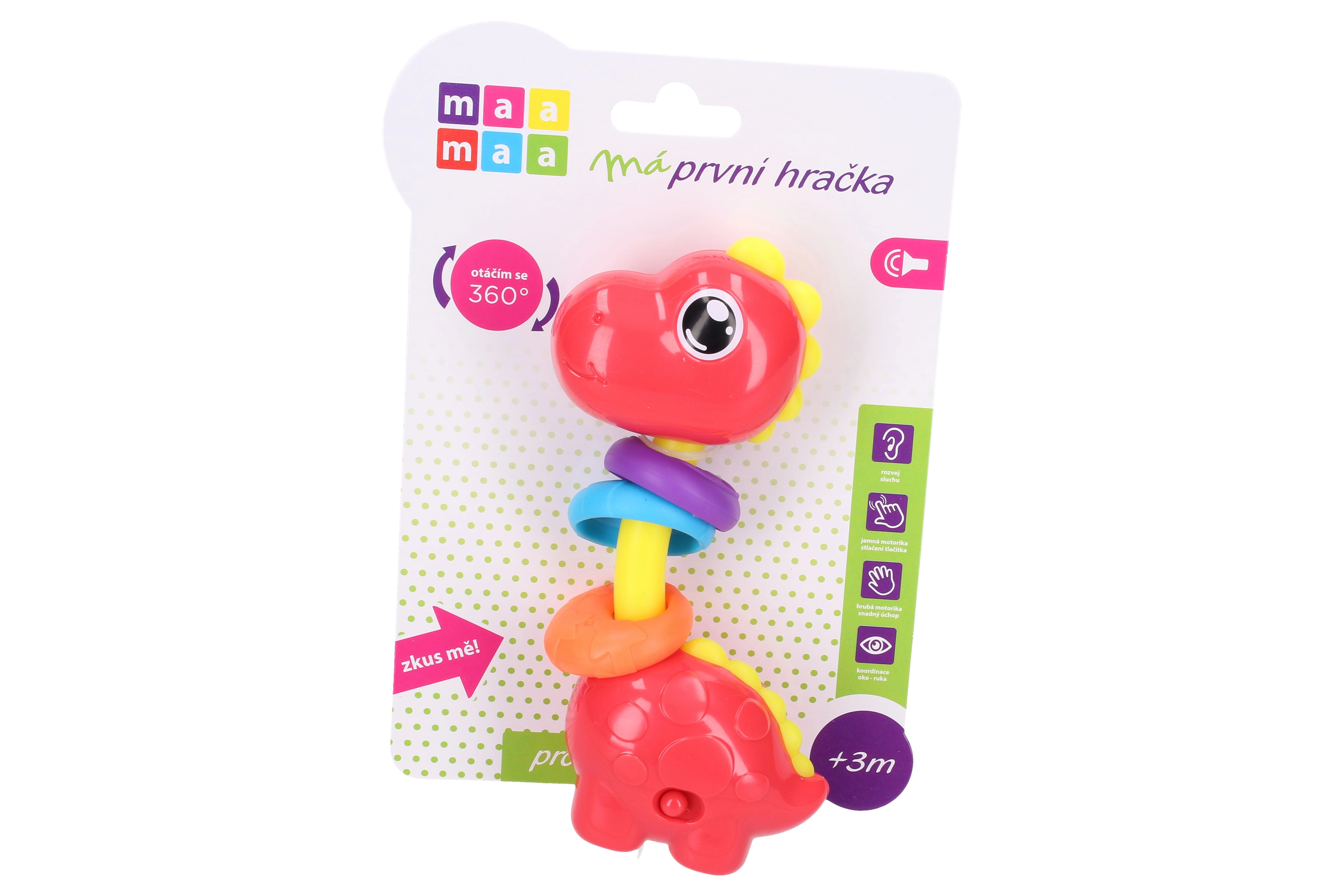 Maamaa Dino z učinki je popolna igrača, ki navdušuje s svetlobnimi in zvočnimi učinki, aktiviranimi s pritiskom na glavo.