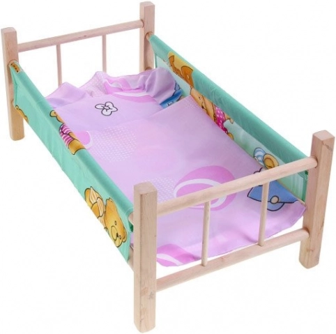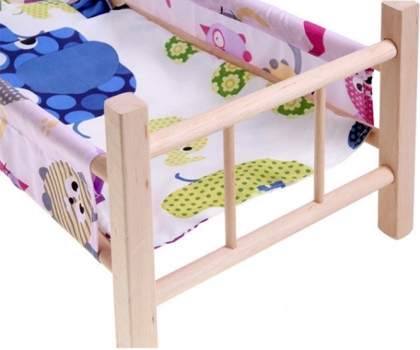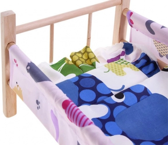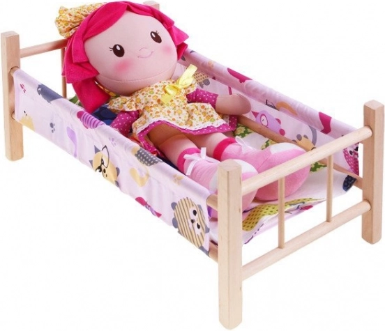lesena posteljica za punčke do največje višine 50 cm je popoln dodatek za vsako malo mamico. Posteljica je izdelana iz naravnega nebarvanega lesa z tekstilnimi stranicami in podlogo. Del kompleta sta tudi blazinica in odejica, idealni za punčko ali medvedka.