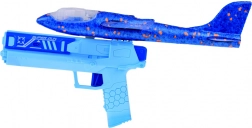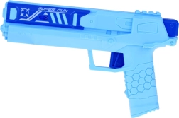 Modra plastična pištola je ergonomsko oblikovana za enostavno upravljanje in uporabo.