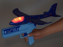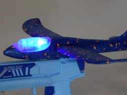 Uživajte v varni in enostavni igri s tem penastim letalom, ki je zasnovano za izstrelitev z uporabo praktične, ergonomsko oblikovane pištole. Letalo, izdelano iz lahke polistirenske pene, ima LED luči, ki dodajo vizualno privlačnost tudi med večernimi igrami.