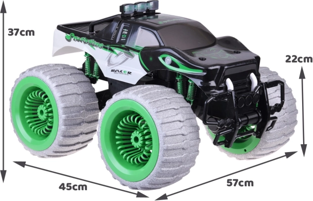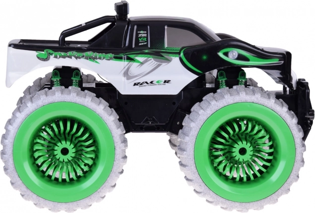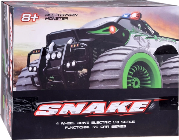 Monster Snake je masiven RC monster truck v merilu 1:8, ki brez težav obvlada teren in ostre zavoje. Dvojni motor razreda 390, vzdržljiva PVC karoserija in velika EPP kolesa s premerom 22 cm zagotavljajo stabilnost, trakcijo in odpornost pri udarcih. Osvetlitev in glasbeni učinki vsaki vožnji dodajo šov.