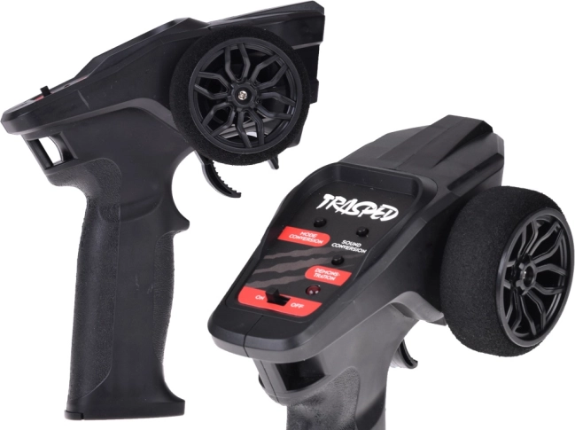Ergonomski 2,4GHz upravljalnik z demo načinom, spremembo hitrosti in upravljanjem glasbe dopolnjuje intuitiven senzorski upravljalnik na zapestju.
