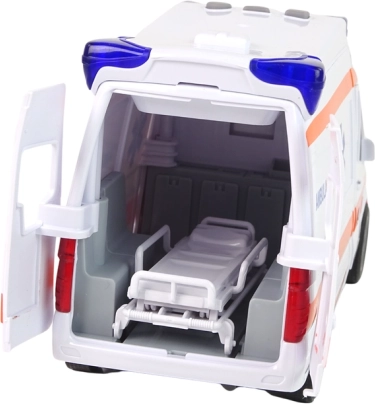 Realistično otroško rešilno vozilo za male reševalce ponuja svetlobne in zvočne učinke, odpirajoča se vrata ter mehanski pogon na vztrajnik. Priložena so odstranljiva nosila na kolescih, gumijaste pnevmatike in varna plastična izdelava, primerna za otroke od 3. leta dalje.