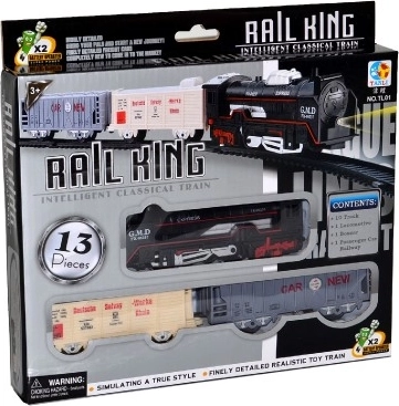Uživajte v atmosferi klasične železnice s to stilsko baterijsko vlakovno garnituro. Set vsebuje lokomotivo, dva vagona in tire, ki ustvarijo krog s premerom 67 cm (dolžina proge 210 cm). Vlak je opremljen s svetlobnimi in zvočnimi učinki za še bolj realističen doživljaj.