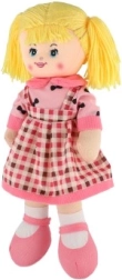 Krpena punčka je izdelana iz mehkega in varnega tekstila, idealnega za crkljanje in igranje otrok.