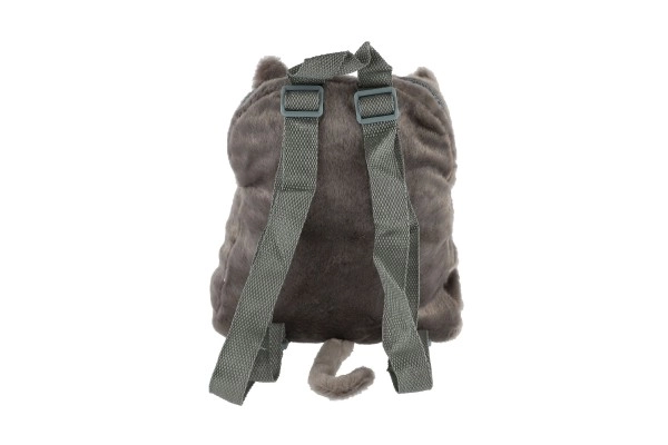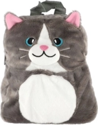 Ljubek in praktičen plišasti nahrbtnik v obliki mačke bo razveselil vsakega otroka. Zahvaljujoč mehki tkanini, kompaktnim meram 23 × 26 cm in nastavljivim naramnicam je idealen za vrtec, sprehode in izlete. Na voljo v 2 barvnih različicah (siva in črno-bela). Primerno za otroke od 3 let naprej.
