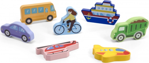 - - 7 koščkov z motivi: letalo, helikopter, tovornjak, kolo, avto, avtobus in ladja