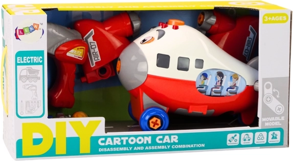 Rdeče DIY letalo je idealna igrača za otroke od 3. leta starosti, ki radi raziskujejo, kako stvari delujejo. Set vključuje baterijsko vrtalno napravo za otroke, izvijač in tri izmenljive nastavke, zato lahko mali mehaniki letalo večkrat razstavijo in sestavijo. Med vožnjo se propeler vrti, kar igri doda avtentičnost.