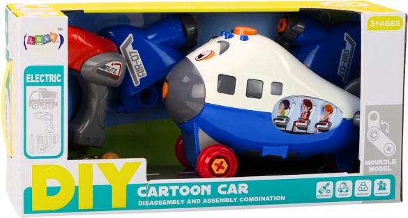 Zabavno risano letalo za sestavljanje v modri barvi spodbuja male konstruktorje k odkrivanju sveta mehanike. Priloženi so otroški akumulatorski vrtalnik, izvijač in zamenljivi nastavki, s katerimi lahko otroci letalo sami razstavljajo in sestavljajo ter razvijajo fino motoriko, logično razmišljanje in kreativnost. Primerno od 3 let naprej, s certifikatom CE in standardom EN71.