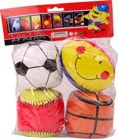 Zabaven komplet 4 mehkih žog za otroke prinaša varno igro in učenje različnih športov – nogometa, košarke, basebolla in ragbija. Vsaka žoga je mehka in varna, idealna tudi za najmlajše športnike. Praktična prozorna vrečka olajša prenašanje na igrišče, v park in na izlete. Odlično za razvoj motorike, koordinacije in timske sodelovalnosti.