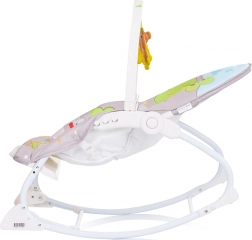 Otroški gugalni stolček Enjoy – dinozaver prinaša dojenčku mir in zabavo v enem. Kombinacija melodij in nežnih vibracij pomaga pri uspavanju in umirjanju, medtem ko lok z igračkami spodbuja razvoj čutov in motorike. Z dvojnim nastavljanjem naslonjala zlahka prilagodite položaj za počitek ali igro.