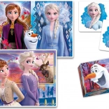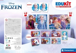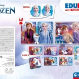 Odkrijte čarobni svet FROZEN z univerzalnim setom iger, ki spodbuja fino motoriko, zbranost in spomin. Dve sestavljanki z enakimi končnimi merami 24 × 17 cm, a z različnim številom koščkov, omogočata otrokom postopno stopnjevanje zahtevnosti. Igra spomin uri vizualni spomin, 6 plastičnih kock pa ponuja še eno možnost sestavljanja s priljubljenimi motivi.