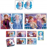Komplet je shranjen v čvrsti kartonski škatli s plastičnim ročajem, zato ga je enostavno prenašati. Odlična izbira za skupne družinske trenutke ali samostojno zabavo otrok, ki obožujejo Anno, Elso in Olafa.