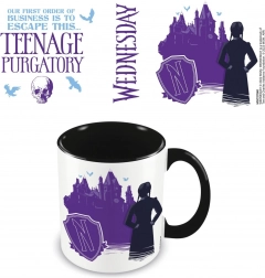 Privoščite si najljubšo pijačo s stilsko keramično skodelico, navdihnjeno s svetom WEDNESDAY. Minimalistična črno-bela izvedba z vijoličnimi akcenti poudarja temno atmosfero Nevermore Academy in se odlično poda za vsakodnevno uporabo ali kot zbirateljski kos.