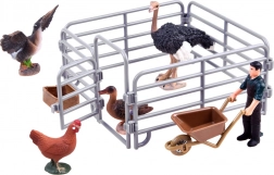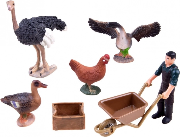 Odkrijte čar podeželja z realističnim kompletom kmečkih figuric, med katerimi ne manjkajo noj, kura, gos, raca, kmet z samokolnico in ograda z dodatki. Ročno poslikani detajli, trpežni materiali in veliko možnosti za kreativno igro ter učenje o življenju na kmetiji.