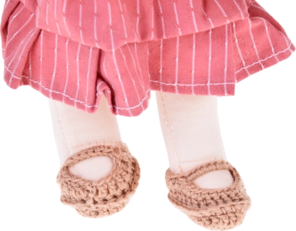 Punčka je oblečena v rožnate in bež tone: ima črtasto obleko, pleten kardigan, klobuček, ujemajoče se čeveljčke in majhno torbico. Dolgi temni lasje in skrbno izdelani detajli ji dajejo edinstven šarm. Elegantna kartonska škatla iz nje naredi čudovito darilo za rojstne dneve in božič.