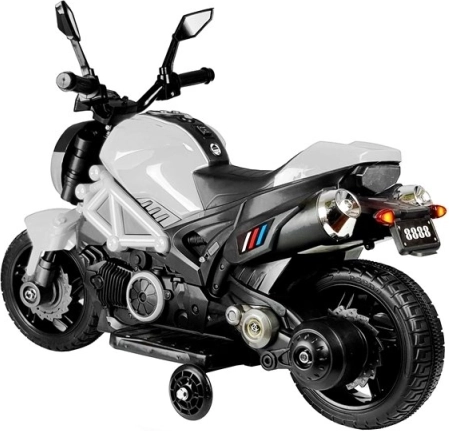 Motor GTM1188 izstopa po robustni izdelavi, ki deluje masivno in otrokom vliva zaupanje. Integrirano podvozje s stopalkami prekriva stranska pomožna koleščka, zato celota deluje realistično kot pravi cruiser. Ne manjkajo vzvratna ogledala, dvojna izpušna cev in prostor za lastno nalepko “SPZ”.